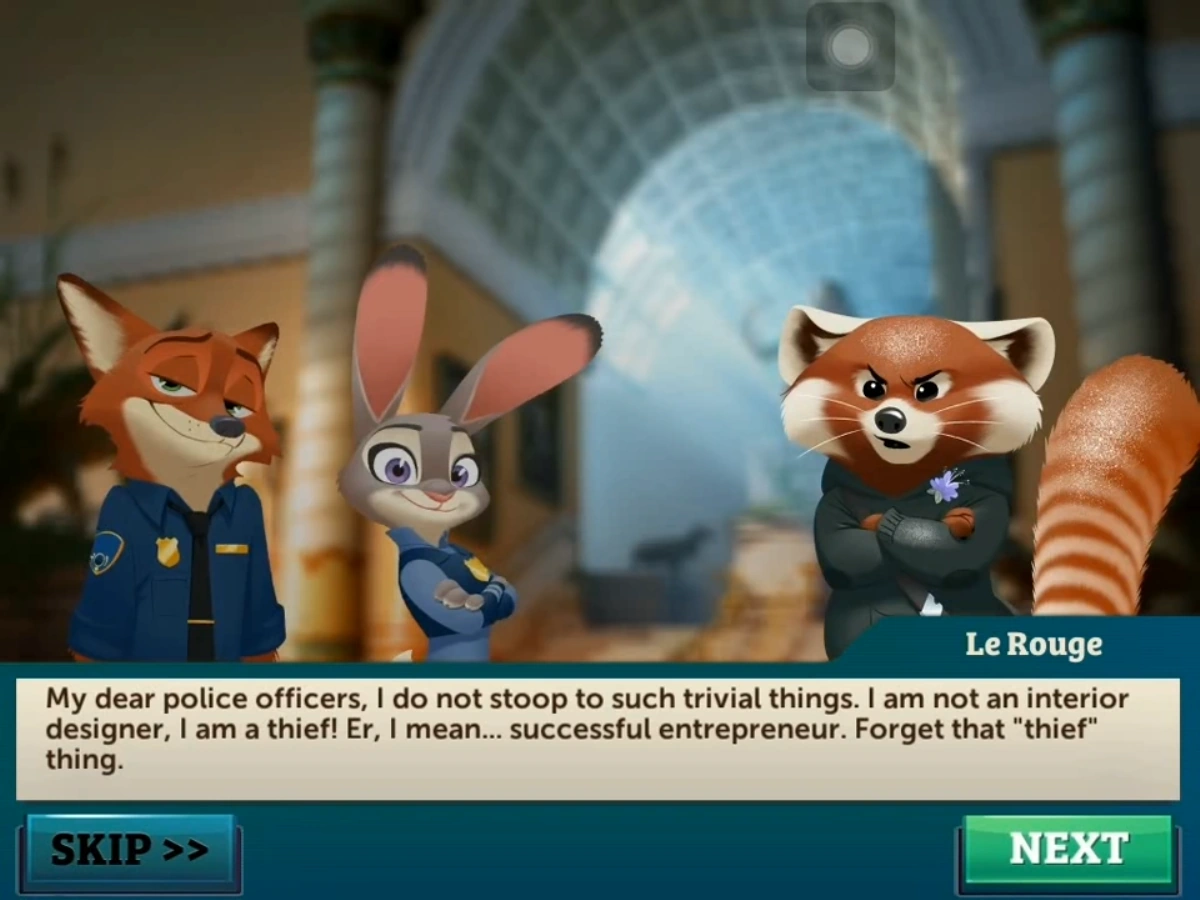 While searching for the suspect who vandalized the Natural History Museum by turning all the dioramas into swamplands, Judy Hopps and Nick Wilde listen to a weasel named Dribs confess to vandalizing the museum. Dribs says that a master thief named Le Rouge and a porcupine named Reuben were in on it as well. When questioning Le Rouge, they all agree that Dribs is nuts. Le Rouge says he doesn't stoop to such trivial things. He said he is not an interior designer, he's a thief, but strikes that, saying successful entrepreneur. Judy comments a good save, then smells something stinky, asking him that he's wearing perfume. Le Rouge responds he likes to be "aromatic when romantic". Judy dismissed him, saying she heard more than enough.
