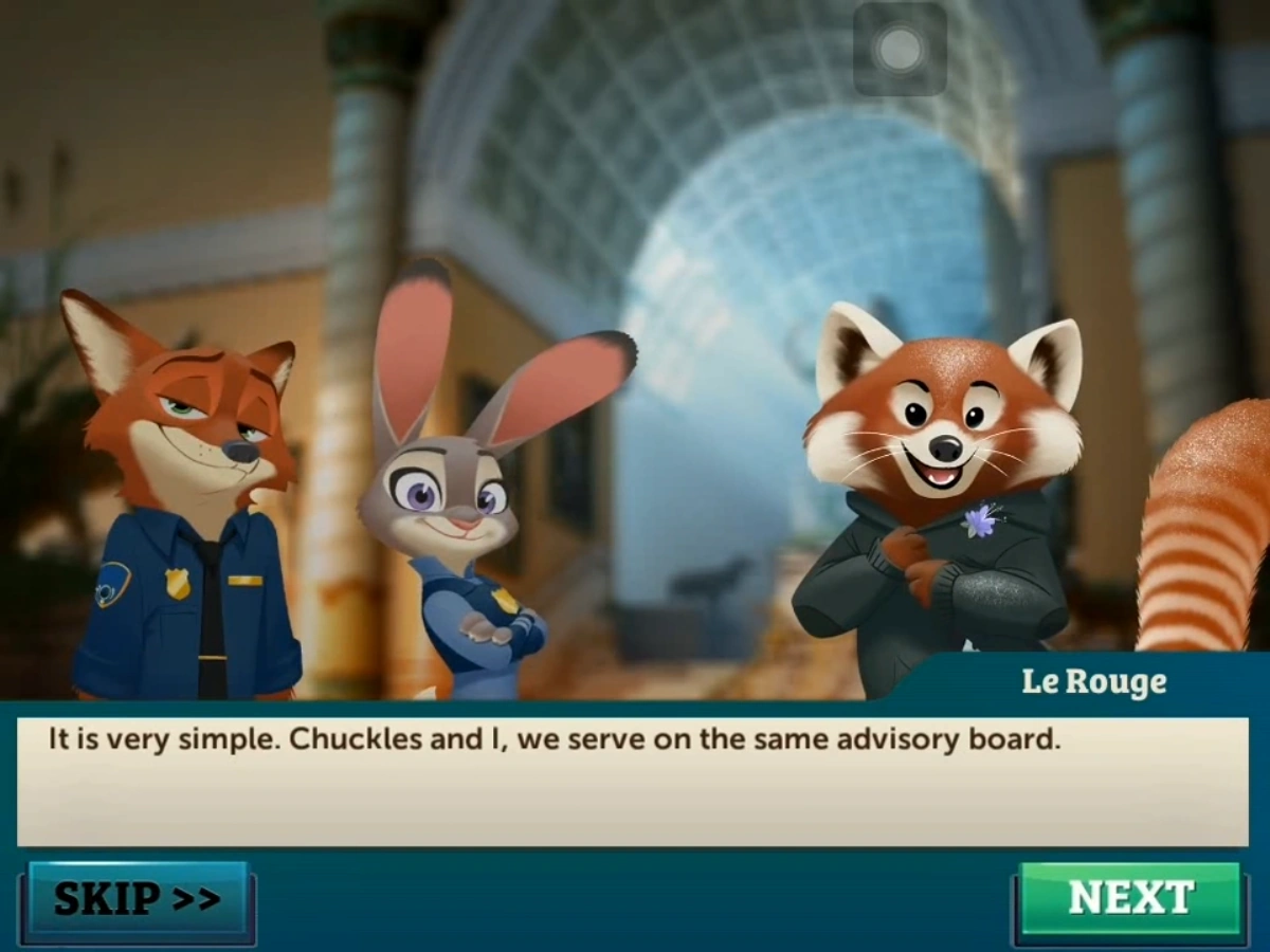 Later, after questioning criminal mastermind, Chuckles, Judy and Nick find a receipt for consultation services he dropped and that Chuckles paid it to Le Rouge. They approached Le Rouge and Judy asks why was he hired by Chuckles for consultation services. Le Rouge says that he and Chuckles serve on the same advisory board. Nick asks about it, but Le Rouge says if they're not on the advisory board, he cannot tell them and he bids them adieu.