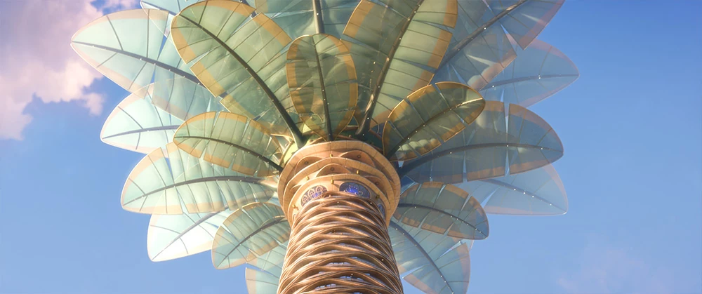 Located in the center of Sahara Square, the hotel is 1,000 feet tall[4], and is designed to resemble a giant palm tree, hence its name.