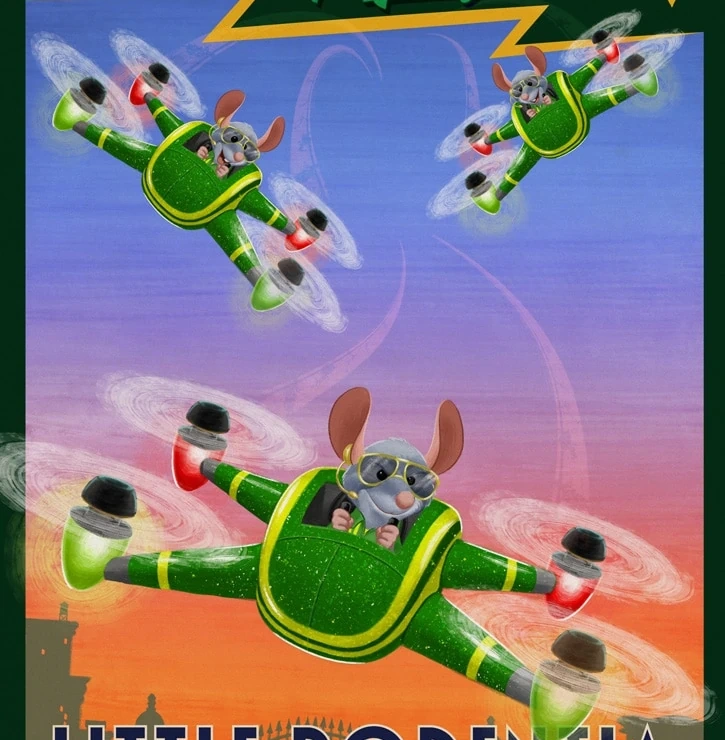 The Shrew Angels perform a coordinated drone show in Little Rodentia for a Zoogether Day celebration. When two rams sabotage their drones with static electricity, they end up flying out of control. One of the pilot's drones picks up Fru Fru and flies around the town. The pilot then takes a selfie before evacuating the drone.
