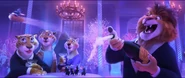 Tailen attends the Zootennial Gala. She sits on the cork of a champagne bottle that a lion pops, sending her flying across the room.