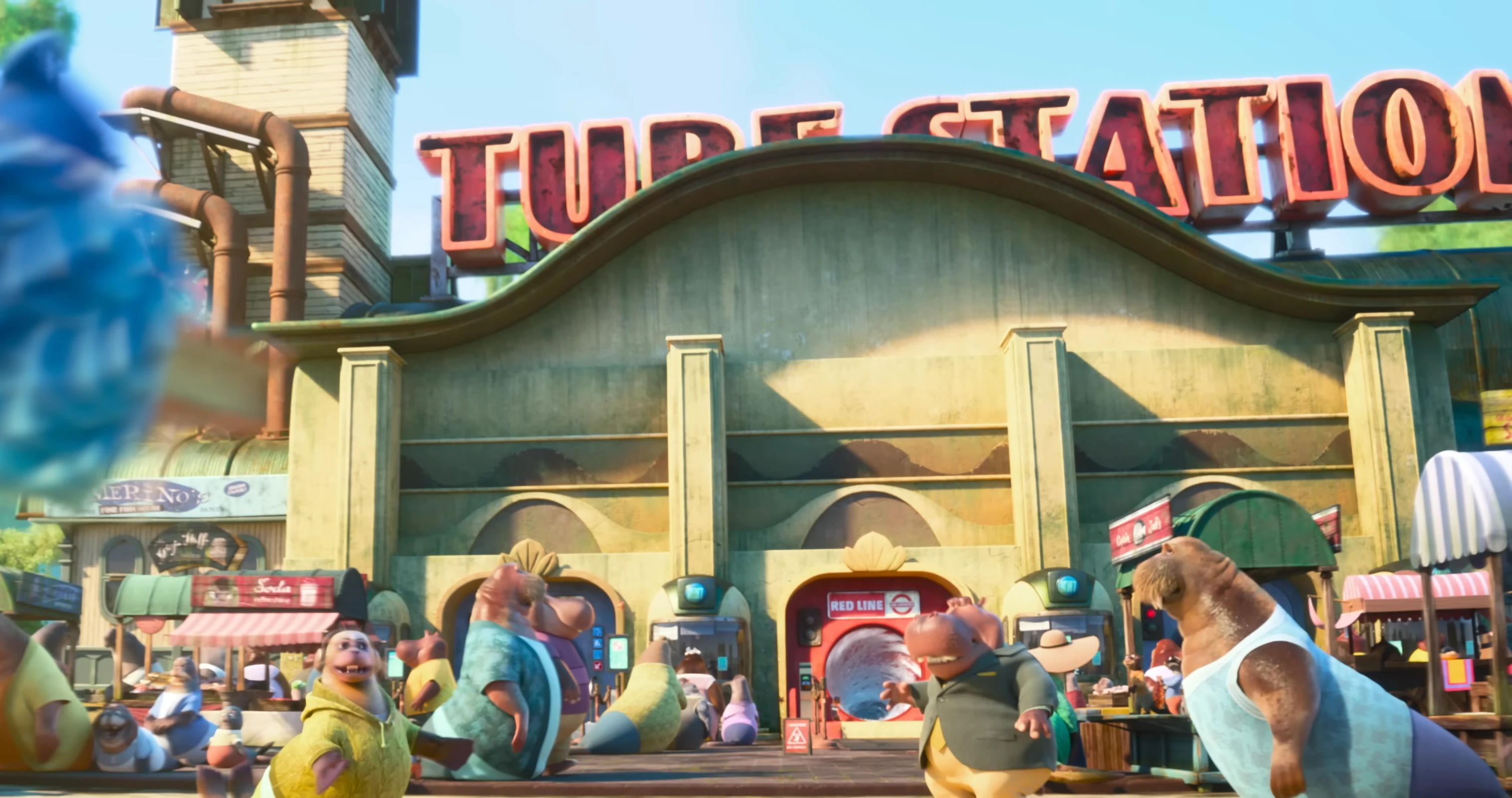 The Tube Station is a terminal station that allows access to the large tubes residents use to quickly travel around the neighborhood. Passengers enter through two lines: